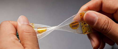 未来医疗电子的发展,势必会需要具备能够弯曲自如表面的新材料。已经开发出一种能如皮肤般弯曲和伸展的电子电路。