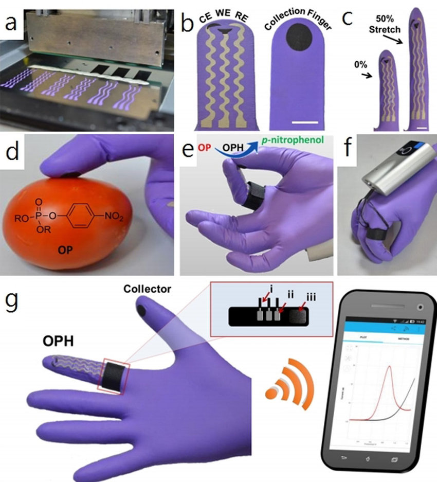 图4. 基于仿生微结构的柔性触觉传感器:(a-c)仿皮肤表层互锁结构;(d-f)仿蜘蛛神经器官的裂纹;(g-i)仿动物胡须。