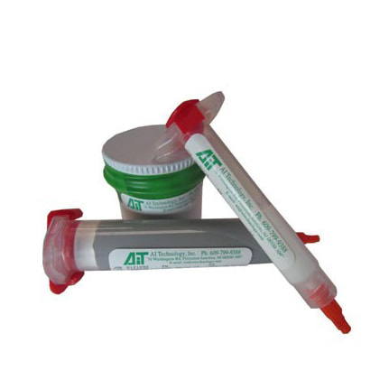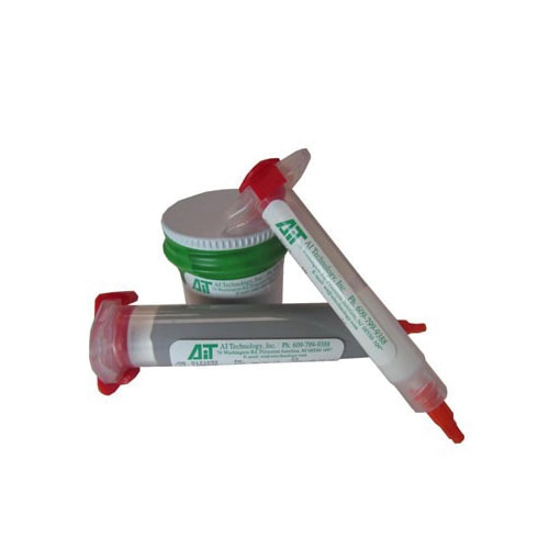 AI Technology M2-A is an accelerated version of M2 for snapcuring applications. This innovative silver-filled epoxy paste adhesive is solvent free, reworkable, and electrically and thermally conductive. With outstanding flexibility for bonding materials with highly mismatched CTE's (i.e. alumina to aluminum, silicon to copper). M2-A can be easily reworked from 80 to 100 ºC and is fitting for applications such as large area die attach and substrate attach because of its ability to bond materials with highly mismatched CTE's. Both viscosity and thixotropic index can be modified to your exact needs. ME2-A is available in syringes for automatic needle dispensing applications or in jars. 1 cc TSI Syringe.