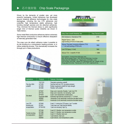 我司是中国唯一代理美国UnitedAdhesives全系列胶,适用于芯片封装,通讯电子,医疗电子,航空航天,军工等先进材料